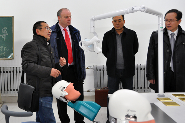 朱军首先向英国科特布里奇学院代表团一行来beat365访问表示欢迎,并向来宾简要介绍了潍坊及beat365的基本情况。Alastair McGhee先生和Jennifer Lowe女士分别通过幻灯片向与会人员展示了苏格兰风貌、科特布里奇学院基本情况及其口腔医学系所开设的课程及课程特色情况等。双方就合作办学、交流互访、互派师生等深入交换了意见,在联合培养口腔护理人才方面达成了初步意向。会谈结束后,来访客人实地参观了口腔医学实验室和护理学实验室。