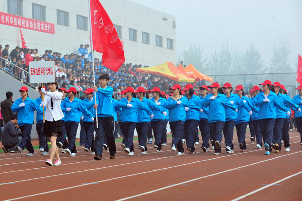 浮烟山校区体育场上,参赛代表队英姿飒爽地列队出场,赢得了阵阵欢呼。