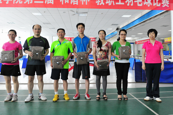本次比赛设男双、女双、混双3个单项,共有108名教职工报名参赛。经过三天66场激烈角逐,杜业松、钟伟,刘洪庆、孟晓亮,王伟、王波获得男双前三名;周青、杨敏,刘雨清、贺齐颖,陈丽霞、孙秀红获得女双前三名;朱俊义、刘国静,李峰、王国娇,刘东进、林秋平获得混双前三名。
