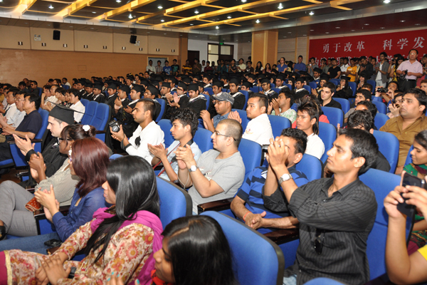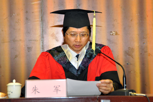 在欢快的音乐声中,马安宁一一为获得学士学位的67名毕业留学生授予学士学位并颁发学位证书。孙宏伟代表学校向圆满完成学业并获得学士学位的留学生表示祝贺,希望留学生们把毕业作为人生新的起点,不断提升自己的知识和技能,锻造优良人格,成为栋梁之才;继续与母校保持联系,关注、支持母校的发展和进步;继续做中外文化交流的使者、传播友谊的桥梁。朱军宣读了《潍坊医学院关于授予2013届留学生学士学位的决定》,葛国文主持典礼。