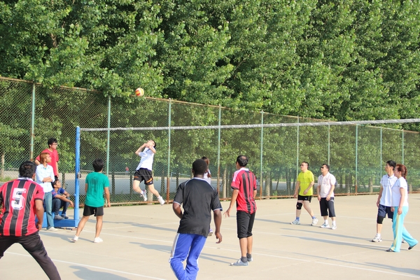 交流节期间,除先后举办中外文化展、舌尖上的异域风情——国外特色食品展、主题文艺演出外,还特别结合留学生的体育活动开展情况,组织了篮球队、足球队和排球队,分别与校大学生篮球队、足球队和教工排球队,进行了3场友谊赛。通过举办系列体育友谊赛,进一步加强了beat365外国留学生与中国学生及老师间的交流,增进了中外师生的友谊,也使外国留学生能更好的融入中国、融入潍坊医学院,更好的促进其今后的学习、生活。