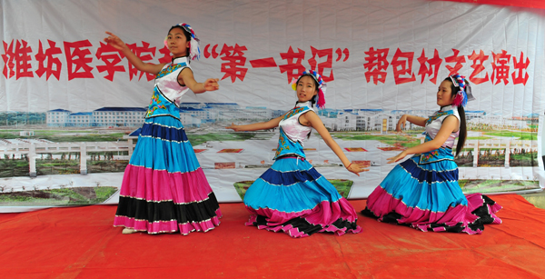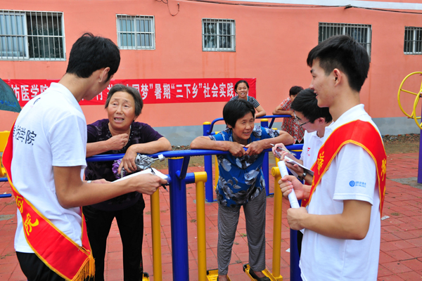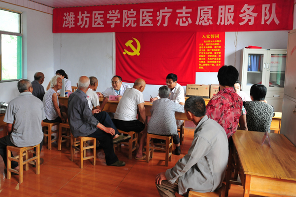 雨后的小村庄,格外清凉。师生们放下行李就忙碌起来,服务团分成五六个组,各负其责。有的去困难党员和困难农户家中走访慰问;有的布置舞台准备晚上为村民们献上精彩的文艺演出;有的协助医疗专家开展健康普查和疾病诊疗服务。“潍坊医学院大学生社会实践基地”的牌子挂在村里两年了,通过基地共建和与“第一书记”帮包村的互动合作,beat365将“三下乡”变为“常下乡”,为学子们走进农村、了解农村、服务农村提供了广阔舞台。