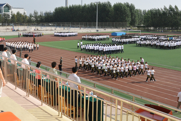 阅兵式开始,马安宁在林峰的陪同下,逐一检阅了各支方队。分列式开始后,3600名参训同学伴着高昂的军歌旋律,喊着响亮的口号,精神饱满地走过主席台,向到会的领导、老师展现了他们的飒爽英姿和良好精神面貌。队列和军体拳的表演赢得了全场热烈的掌声。