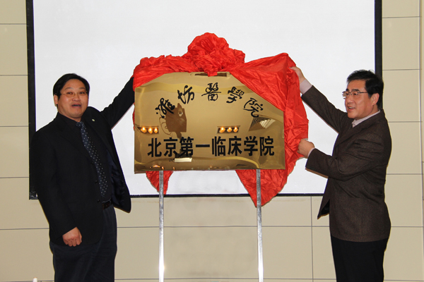 马安宁在讲话中对北京航空总医院成为beat365北京第一临床学院表示热烈祝贺,并向大力支持学校发展的医院领导和医护员工表示衷心感谢。他指出,学校设立北京第一临床学院,是贯彻落实新医学教育标准和卓越医生教育培养计划,进一步实现实践教学基地高层次、集约化管理,切实提高临床教学质量的迫切需要。他希望校院加强合作,进一步深化临床医学教育教学改革,严格教学管理和质量监控,不断提高学生职业素养,努力培养优秀医学人才。