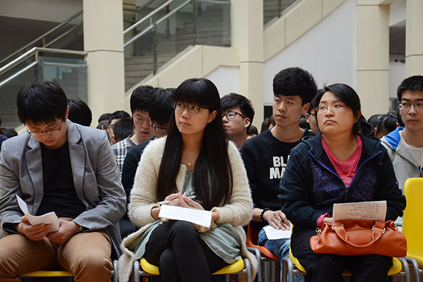 丁广举从核心价值观的来历和内涵讲起,提出“中国梦是我国发展所追求的伟大目标,而核心价值观就是我国实现中国梦所要实施的方针政策”。接着丁广举又以台湾教育家高震东为例,向大家讲述什么是学生、如何做一个优秀的大学生。丁广举认为一名优秀的大学生应具备高尚的品德修养、良好的身体状况、健康的心理素质以及一定的真才实学。当谈到什么是成才时,丁广举引用孔子的话,把年轻人分为“成材、成器、君子不器”的三个阶段来帮助大家理解成才,并指出成才就是要做一个人人喜欢你的人,一个人人需要你的人,一个为国家的需要而奋斗的人。慷慨激昂的言辞引得全场师生强烈共鸣和深思,现场气氛热烈。