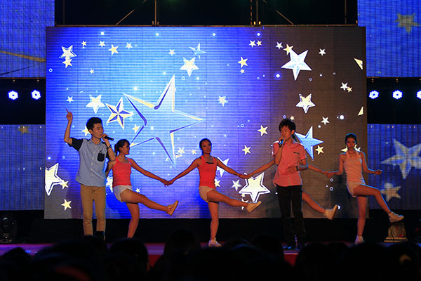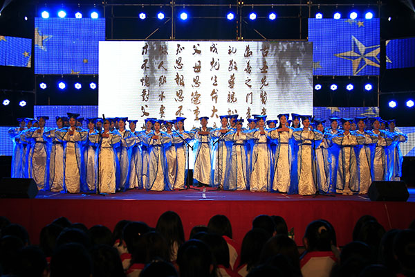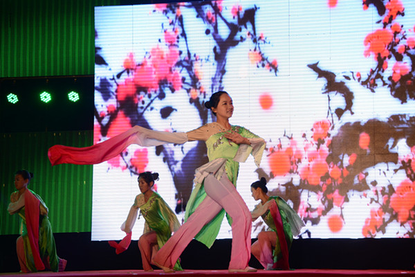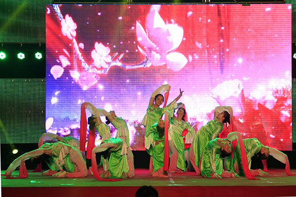 开幕式晚会在欢快优美的器乐合奏《中国风》中拉开了帷幕。轻快舒畅的舞蹈《呼唤绿荫》踏着春天的节拍带来了青春欢乐的气息;留学生带来的独唱《我的歌声里》婉转悠扬,博得了观众的阵阵喝彩;表演唱《念尊亲》将经典诗文融入其中,弘扬了“百善孝为先”感念亲恩的优秀传统美德;慷慨激昂的朗诵《中华传承》用雄壮和豪迈诠释了中华文化的博大精深和源远流长;“生儿养女一辈子,满脑子都是孩子哭了笑了”一首催人泪下的《时间都去哪儿了》让观众深刻体会到时间的易逝与亲情的珍贵;武术《中国人》中持剑者移步轻盈,舞刀者落脚沉稳,将武术这一国粹演绎的淋漓尽致;活力四射的歌伴舞《向梦想出发》歌颂了青春年华的斑斓梦想,将晚会气氛推向高潮,也为此次开幕式画上了圆满的句号。