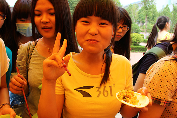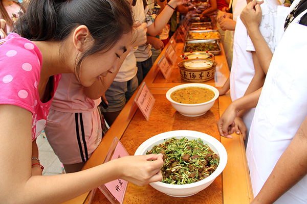“舌尖上的异域风情”国外特色食品展于6月8日中午在浮烟山校区杏林餐厅西门广场举行。来自20多个国家的百余名留学生发挥各自聪明才智,结合各自国家的特色民俗,各显其能,烹制并展出了一道道来自非洲、南亚、东南亚等地区的美食,吸引了众多师生前来观看并品尝。今年新增加的非洲国家特色食品展览尤其吸引人,中外师生们将展台围了个水泄不通,品尝后都对独具异域风情的美食大加赞赏。