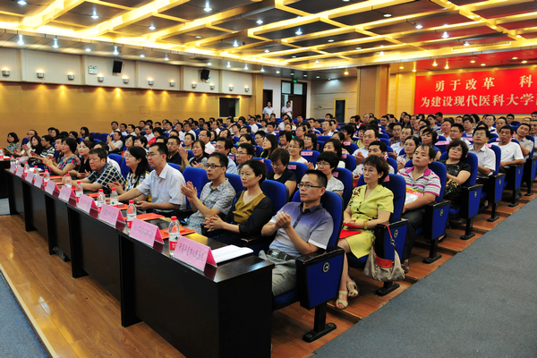 学校各部门、各院(系)负责人,附院集团管理委员会成员、教育教学质量督导评估专家,教研室、实验室负责人,部分教师代表,离退休老教师代表,学生代表以及获奖人员代表参加了会议。