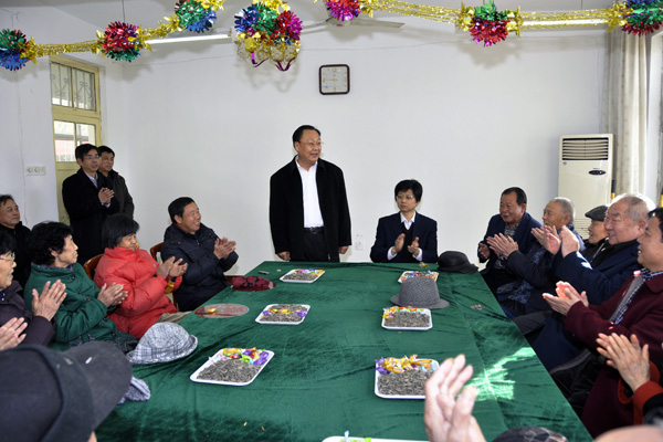 2月19日大年初一上午,学校分别在奎文校区和浮烟山校区举行离退休老同志春节团拜会。校领导马安宁、朱军、葛国文与离退休老同志欢聚一堂,互致祝福、喜迎新春佳节。