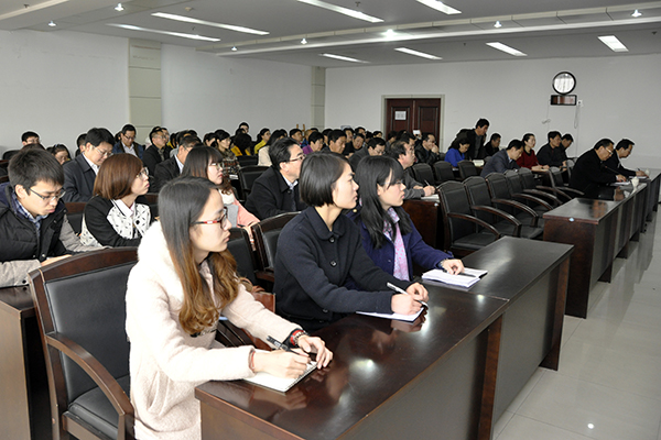 校长马安宁,各党总支书记,党委宣传部、学生工作部(处)、团委科级以上干部和全体辅导员参加了报告会。