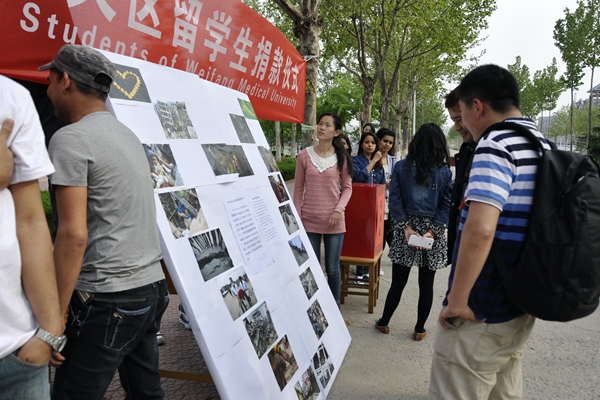 2014级临床学院的程舒海听说捐款的事后,在校园里跑了几个地方才找到现场。2008年汶川地震时,上小学6年级的她在家乡成都也与同学们感受到了较强的震动,他们跑出教室后,发现教室的墙都裂了。“那种恐怖的记忆是深刻的。尼泊尔的地震也使我们感同身受。”