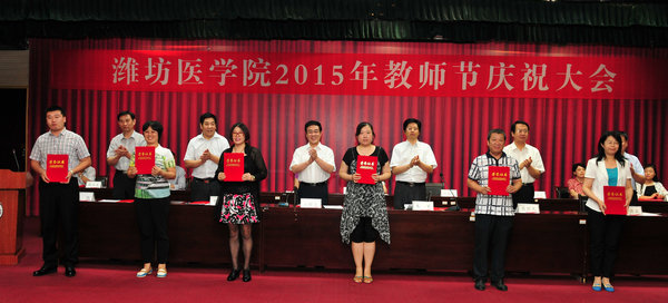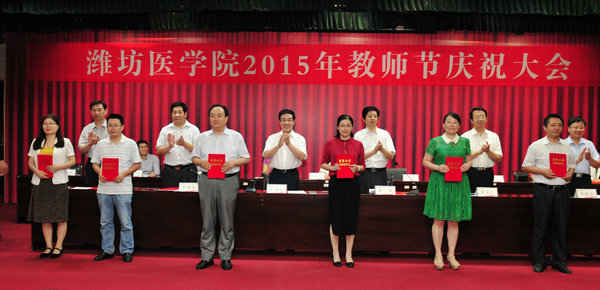 石增立代表学校为山东省科学技术进步奖二等奖获得者张维芬教授颁发证书、并颁发奖金30万元;为山东省高等学校教学名师张正厚教授颁发证书。校领导分别为校优秀教师代表、先进工作者代表、实践教学先进集体和先进个人代表、在教育教学岗位工作满30年的教职工代表颁奖。