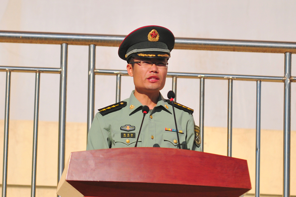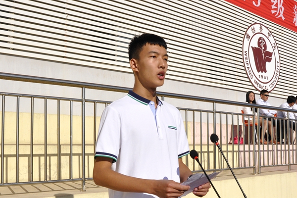 学校办公室主任、军训工作领导小组副组长刘军宣布了军训团成员名单。潍坊军分区炮兵旅指导员、军训团团长陈宪法代表全体施训教官讲话,表示将严格标准,认真施训,全面做好军训工作。学生代表王春旭代表全体参训学生作了表态发言,表达了刻苦训练、努力拼搏的决心。