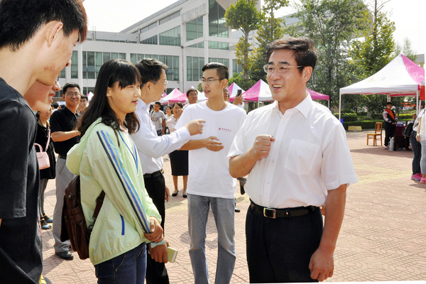 校领导高度重视迎新工作。校党委书记石增立、副校长管英俊、葛国文来到迎新现场,了解新生报到情况,现场协调解决有关问题。石增立与前来报到的新生和家长热切交谈,并与新生合影留念。他欢迎大家来到潍坊医学院,希望同学们尽快适应环境,熟悉大学生活,融入潍医大家庭,走好大学第一步。