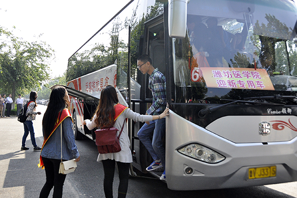迎着初升的太阳,参加接站的志愿者们早早就随学校大巴来到火车站和汽车站,用热情周到的服务迎接新生的到来。杏林餐厅的广场前,志愿者们搬桌子、搭帐篷、立宣传板,做好各项准备工作。校园里,“乐道济世做栋梁 海阔天空展英才”、“金秋送爽潍医喜迎八方学子 杏林飘香师生共创美好明天”等红色迎新横幅十分醒目。伴随着校广播站不间断播送着的迎新节目,一块块活泼生动的迎新展板、一张张充满创意的宣传海报,让潍医校园沉浸在浓浓的迎新氛围中。