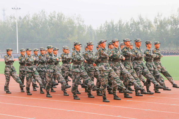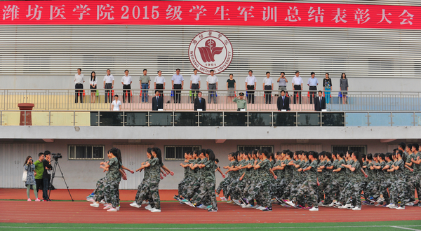 军训工作领导小组全体成员,2015级学生辅导员、班主任,全体教官和参训学生参加大会。