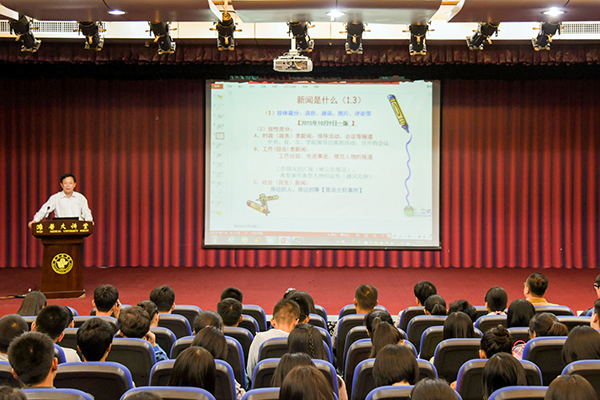 张学启结合其自身丰富的工作经验,通过大量的真实案例,向老师和同学们详细讲述了新闻稿的基本要素、写作方法和技巧,并与同学们进行互动,对同学们在新闻写作过程中遇到的问题作了充分解答。