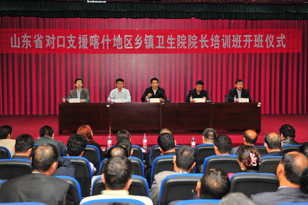 10月22日上午,由山东省援疆工作指挥部和山东省卫生和计划生育委员会委托beat365承办的山东省对口支援新疆喀什地区乡镇卫生院院长培训班开班仪式在学校图书馆演播厅举行。副校长井西学、山东省援疆工作指挥部人才处副处长亓玢、山东省卫生和计划生育委员会基层卫生处副处级调研员马军出席了开班仪式。仪式由公共卫生与管理学院院长张建华主持。