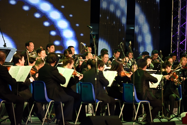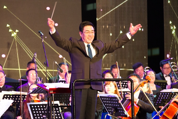 晚上7时,学校浮烟山校区中和广场座无虚席,随着指挥右手一扬,抑扬顿挫的旋律开始响起。当晚,交响乐团为听众们演奏了《红旗颂》《雷电波尔卡》《梁祝》《匈牙利舞曲》第5号、《沂蒙山小调》《我爱你中国》等18首中外名曲,这些作品涵盖了古今中外的音乐经典。作为音乐会开场音乐,交响序曲《红旗颂》创作于1965年,当年5月在上海第六届“上海之春”开幕式上首演,取得巨大成功。半个世纪来,这首雅俗共赏的交响乐气势磅礴、优美雄浑、长演不衰,深得广大听众的喜爱。小提琴协奏曲《梁祝》以越剧中的曲调为素材,描述了梁山伯与祝英台悲戚的爱情故事,曲目由小提琴奏出主题,让观众身临其境,仿佛祝英台在身旁正将这份爱情故事娓娓道来。《匈牙利舞曲》第五号由德国作曲家勃拉姆斯创作,运用匈牙利舞曲的节奏特点、旋转的风格和浓郁的乡土气息,表达了匈牙利民族深沉的忧郁和狂热的欢乐。歌唱家们还现场为师生献唱了《龙船调》《把一切献给党》以及男高音的代表作《我的太阳》。beat365大学生艺术团的同学们与交响乐团合作为师生带来了合唱《沂蒙山小调》和《天路》。音乐会返场曲目《拉德斯基进行曲》,以小提琴为主,不时插入大提琴、长笛、大鼓的奏音,纷乱中见和谐,其凌空而起的合奏乐立刻让人有种军队凯旋的即视感。校党委书记石增立登台指挥,在充满节奏感的节拍声和欢乐的鼓掌声中,为晚会画上了圆满的句号。