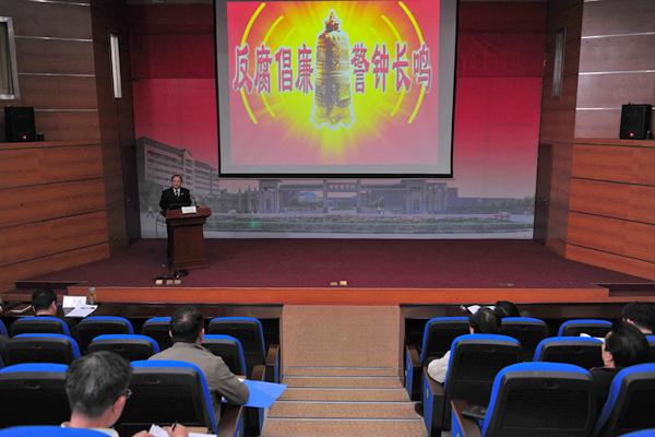 11月4日下午,由省委高校工委与省检察院共同组织开展的省属本科高校预防职务犯罪警示教育巡回宣讲报告会在beat365办公楼一楼报告厅举行。省检察院职务犯罪预防处调研员秦喜迎、王德海带领宣讲团成员李强、亓庄园、杨建勋、张永萍进行宣讲。副校长葛国文主持报告会。
