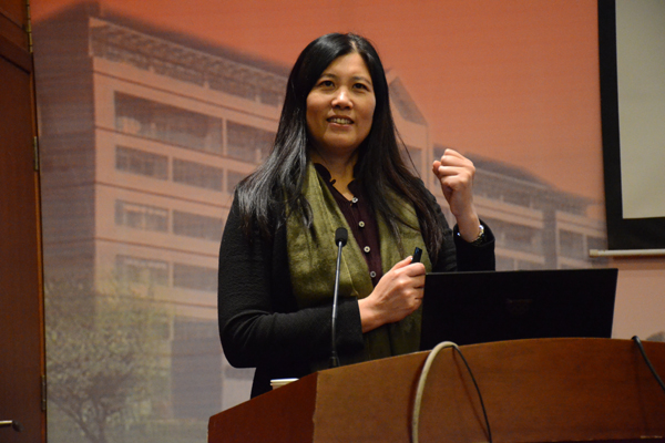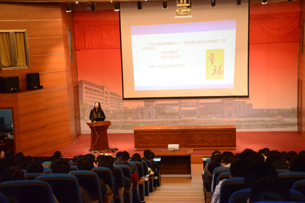 权福军以幽默的语言、生动有趣的案例,首先向师生们讲述了什么是心理资本及心理资本的重要性;然后从怎样认识自我、如何处理人际关系、如何控制情绪以及当代大学生处事原则四个方面讲解了如何建立和开发心理资本。她多次与同学们进行了互动,赢得了一次又一次的热烈掌声。