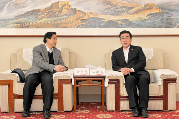 3月17日上午,以山东师范大学人才工作办公室主任岳希亮为组长的省高校人才工作目标责任制考核组一行4人来beat365考核人才工作。汇报会前,校党委书记石增立,校党委副书记、校长管英俊,校党委副书记张潍华会见了考核组。