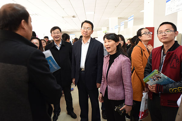 春风花草香,校园双选忙。3月19日,学校浮烟山校区,来自全国各地400余家用人单位前来揽才,beat365及全省相关高校8000余名毕业生前来应聘。参加双选会的单位和学生数量再创历史新高。校领导管英俊、葛国文到双选会现场调研指导。