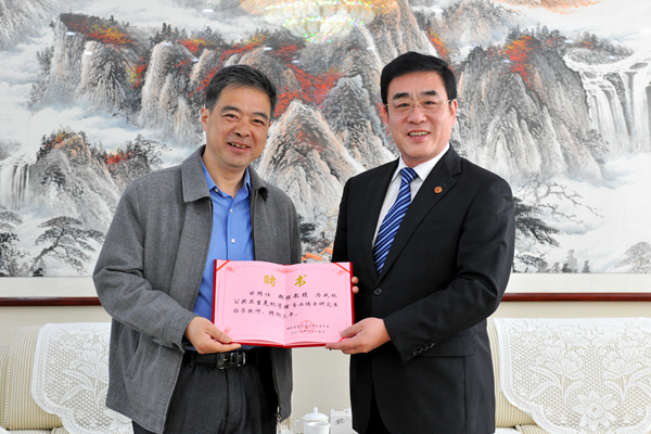 4月15日上午,学校在办公楼五楼接待室举行聘任仪式,聘请复旦大学郝模教授为beat365“健康山东”重大社会风险预测与治理协同创新中心首席专家、公共卫生危机管理专业博士研究生指导教师。校领导石增立、管英俊、孙宏伟、葛国文出席了聘任仪式。