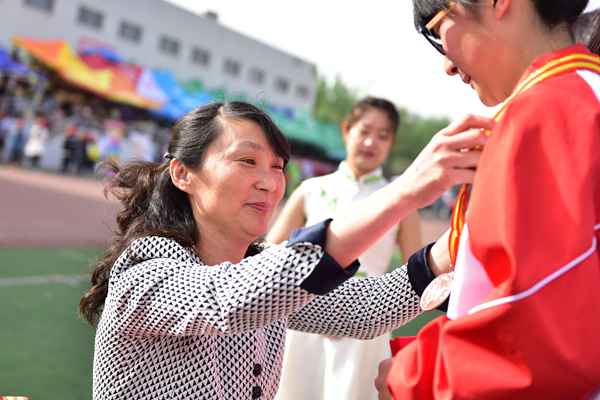 闭幕式上总裁判长宋文民宣布比赛成绩和优秀组织奖、体育道德风尚奖获奖名单。校领导为获奖代表队颁奖。