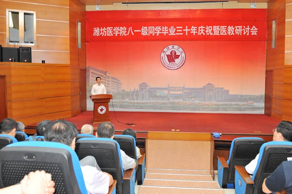 庆祝活动暨医教研讨会上,石增立发表了热情洋溢的致辞。他代表学校欢迎校友们回母校团聚,他介绍了学校的发展和奋斗目标,希望校友们一如既往的关心支持母校发展,欢迎校友常回家看看。时任校学工部门、医学系领导的姜维茂、张英喜,辅导员房文魁等6位老师也送上了浓浓的祝福和殷切的嘱咐。来自中山大学的刘焕亮校友和从海外归来的尹建明校友以及北大医疗鲁中医院院长顾国明校友汇报了自身学习和发展历程,均表示将在不同领域、更加积极主动的关心支持学校发展。