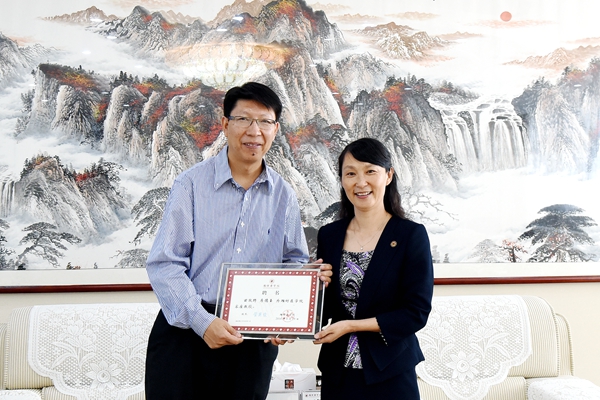 校党委副书记、校长管英俊为房德玉教授颁发聘书 |