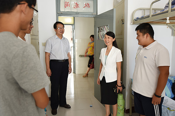 校党委副书记、校长管英俊,副校长葛国文走访新生宿舍 |