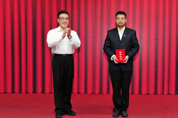 校党委书记石增立为一等奖获得者颁发证书 |