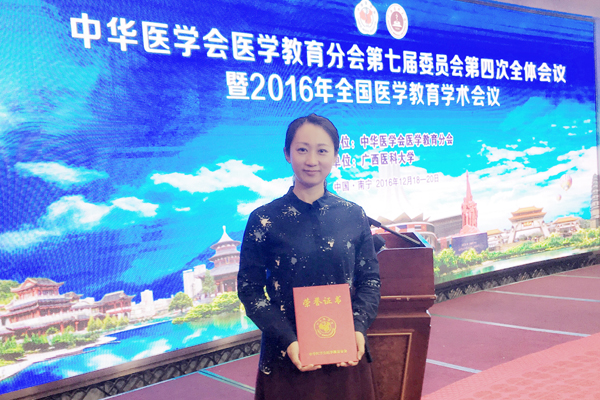 近日,由中华医学会医学教育分会、中国高等教育学会医学教育专业委员会举办的第六届全国医学(医药)院校青年教师教学基本功比赛颁奖大会在广西医科大学举行。代表beat365参赛的药学院韩玮娜老师荣获基础组二等奖,总成绩为我省参赛医学院校的最好成绩。