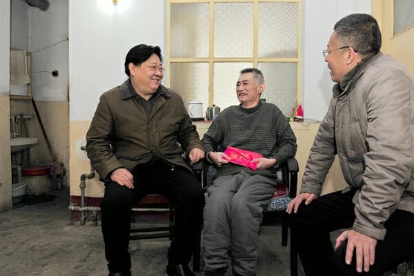 在省级劳动模范洪舜华教授家里,孙宏伟介绍了学校的改革发展情况,并送上了省、市劳动模范慰问金,同时转达了学校的关心和祝福。在冯国勤老师家里,孙宏伟详细询问了其身体和生活状况,并代表学校送上了慰问金,转达了学校的关怀和问候。