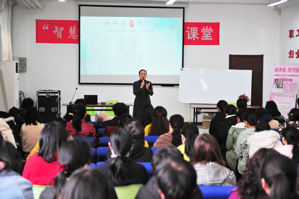 3月8日下午,教职工活动中心暖意融融,140多名女教职工和女大学生在此一起聆听了一堂女性修养公益课,在享受学习中度过了自己的美好节日——第107个“三八”国际妇女节。《女子安 天下安》系列书籍作者、国家二级心理咨询师袁洁老师携团队成员作客校工会、妇委会“智慧女性·美丽人生”课堂,就女性如何正确认识和担负起自己的角色、如何关爱和调适自我、保持健康体魄和良好心态、做智慧幸福女性和大家进行了探讨和分享,带来了精彩一课。妇委会主任、工会副主席魏瑞荣主持了课堂活动。