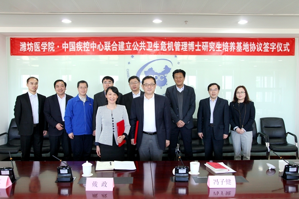 签字仪式上,冯子健介绍了国家疾控中心的基本情况以及卫生应急管理的有关情况,对beat365公共卫生危机管理博士人才培养的意义和重要性给予了高度评价,认为潍坊医学院作为国家首个卫生危机管理博士人才培养单位,其培养工作的实施将有助于提高国家公共卫生应急管理理论水平和卫生应急管理能力。卫生应急中心主任李群就beat365研究生在基地实训期间的培训目标、培训计划、学习安排、日常管理等作了介绍,表示要全力做好实训期间的各项工作,确保博士研究生培养质量。