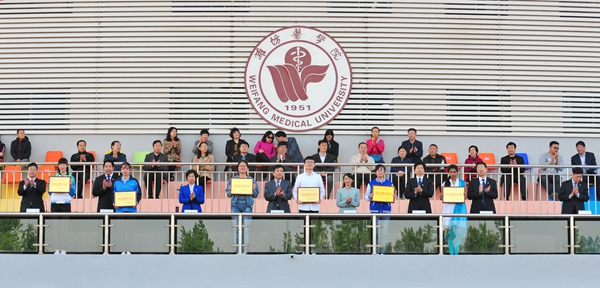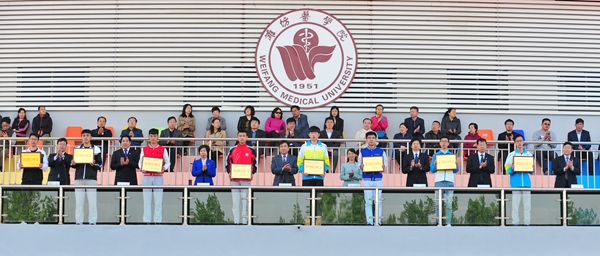 葛国文致闭幕词,他代表学校和大会组委会向获奖的个人和集体表示祝贺,向为运动会成功举办付出辛勤劳动的全体裁判员、工作人员、志愿者和广大热情文明的观众表示感谢。他指出,广大师生医务员工在组织、参与比赛的过程中充分发扬“自强不息,锐意进取”的潍医精神,展现出了爱校强校、以校为荣的主人翁意识和凝心聚力、争创一流的精神面貌,对进一步推动beat365群众体育的蓬勃开展,贯彻落实“一三七”发展思路,强化人才培养中心地位,全面提升应用型人才培养质量,必将产生积极的促进作用。他希望大家继续保持和传递本届运动会上的拼搏与激情,在全校形成挑战自我、勇攀高峰,坚定信念、砥砺精神的文化氛围,以健康的体魄和饱满的热情投身于学习工作中,立足岗位,再接再厉,为创建特色鲜明、国内知名的高水平医科大学做出新的更大贡献。