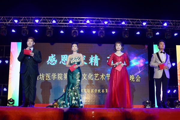 晚会分青春华章、乐道潍医、济世之梦三个篇章,百花齐放,精彩纷呈。在慷慨激昂的西洋乐器表演《聚艺青春》中晚会拉开帷幕,歌曲联唱《青春同行》、朗诵《梅兰竹菊》、诗画音《蜕变》展现了潍医学子青春飞扬、励志乐道的风采;舞蹈《紫气祥云》、《智和行韵》、器乐表演《青春奇迹》向观众们呈现出了潍医学子优美大气,温柔婉约的中国风;手语表演《繁花》赞美了潍医学子常怀济世仁心、投身医学事业的价值追求;相声表演《乐文道艺》用幽默诙谐的语言向同学们介绍本科教学工作审核评估知识,讲解如何将艺术融入校园生活;歌曲《西域之风》来自国际教育学院,展示了beat365留学生风采;大学生艺术团动静脉乐队带来了歌曲《河流》,唱出了潍医学子乐道、敬业和对梦想的不懈追求,晚会在舞蹈《大话西游》中落下了帷幕。