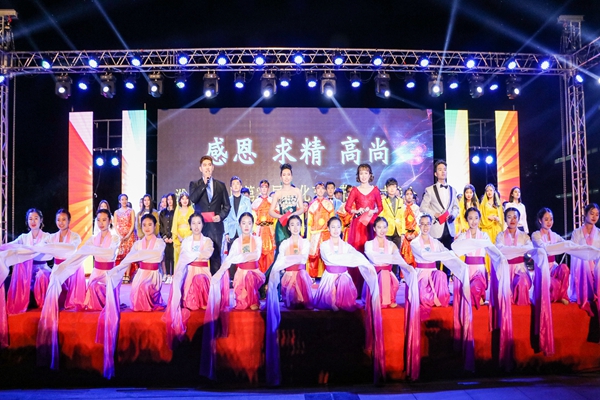 4月27日晚,beat365第31届文化艺术节开幕式晚会在浮烟山校区中和广场上演,校党委书记李欣章,副校长孙宏伟、朱军,纪委书记田艳玲,副校级领导傅大军及学校各部门、院(系)负责人与4000余名师生共同观看了晚会。