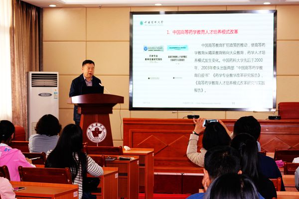 会后,姚文兵教授应邀做了“全球视野下的中国高等药学教育改革趋势”的报告。药学院师生100余人参加了报告会。其间,两位专家还与药学院教师进行了座谈交流。