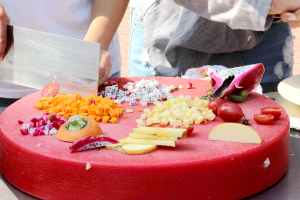 比赛过程互动热烈,穿插了削苹果、吃西瓜等小游戏,一些随机的现场问答也加深了同学们对我国传统美食文化的了解,提高了同学们参与活动的积极性。