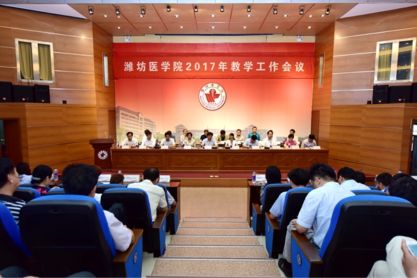 5月27日,学校在办公楼一楼报告厅召开2017年教学工作会议。校领导李欣章、管英俊、张潍华、孙宏伟、井西学、葛国文、刘军、田艳玲以及部分附属教学医院的领导出席会议并在主席台就座。副校长葛国文主持会议。