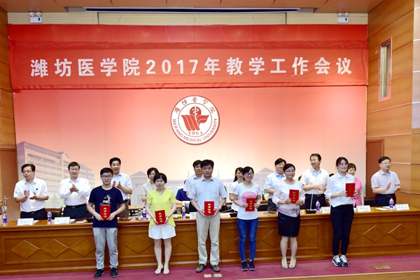 副校长井西学宣读了有关表彰决定。主席台领导为2017年教师教学基本功比赛、第四届青年教师教学比赛和2017年实习学生临床技能竞赛中获奖的优秀单位和个人颁发了奖牌和证书。