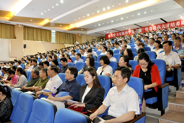 校长管英俊作了题为《扎实推进教育教学综合改革 全面提高人才培养质量》的教学工作报告。她从专业建设、教学改革、师资建设、条件保障、质量监控评估、人才培养质量等六个方面总结回顾了近年来学校教学工作和人才培养取得的成效,深入分析了存在的问题和不足,并对下一步教学工作提出了目标任务和具体措施。一是更新育人理念,落实评建任务 ;二是优化专业布局,突出特色优势;三是创新培养模式,提升培养质量;四是加强课程建设,丰富教学资源;五是改进实践教学,强化能力培养;六是强化考试管理,改革评价方式;七是建设教学团队,提升教师能力;八是狠抓学风建设,营造良好氛围;九是加强条件保障,完善体制机制。管英俊号召全校师生医务员工在学校党委的坚强领导下,进一步统一思想,明确任务,真抓实干,以奋发有为的精神状态和求真务实的实际行动,共同推进本科教学工作再上新台阶,为建设特色鲜明、国内知名的高水平医科大学做出新的更大贡献。