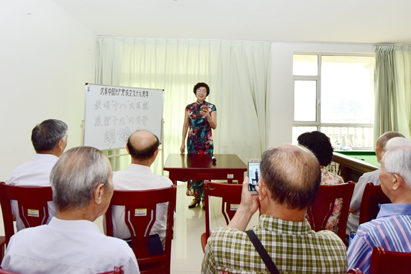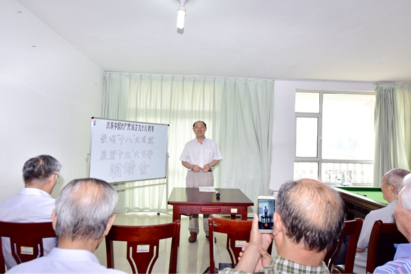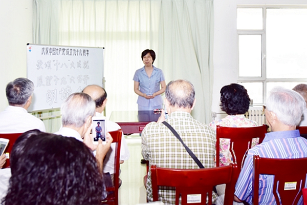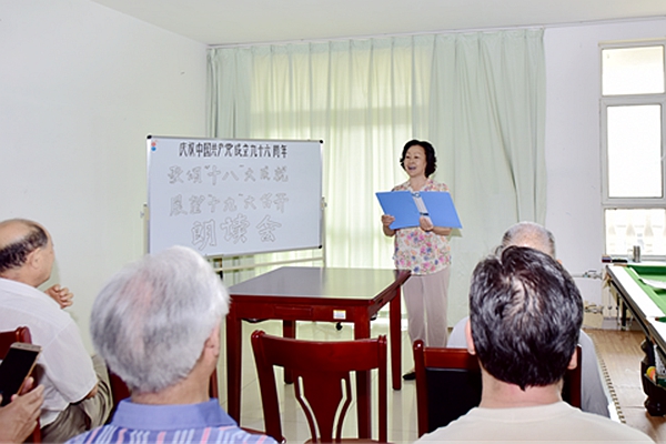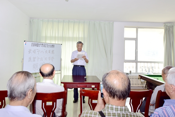 6月28日下午,在浮烟山校区离退休职工活动中心,离退休党委第七党支部的30多党员干部汇聚一堂,开展了以“歌颂十八大成就,展望十九大召开”为主题的庆祝建党96周年朗读会。校党委副书记张潍华以一名普通党员的身份参加了此次朗读会并进行了朗读。