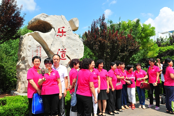 纪念大会后,老师和同学们为捐赠的“乐道石”揭幕,并合影留念。校友们游览了新老校区,重拾上学时的记忆,来到餐厅再吃一顿食堂饭;来到当年的教室,坐一坐自己的老位置,处处流露对母校的念念不忘。