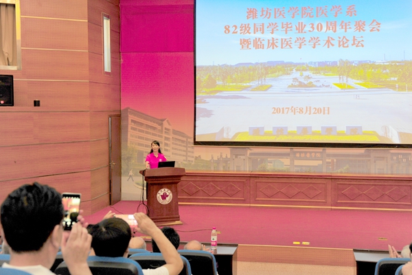 20日上午,医学系82级同学毕业30周年纪念大会暨临床医学论坛在新校区报告厅举行。管英俊代表学校致辞,欢迎校友们回到母校,对校友们给予母校的关心和支持表示感谢。她向校友们介绍了毕业30年来学校发生的变化,传递了学校凝心聚力,发奋图强争创医科大学的坚定信心。时任82级老师代表姜维茂、张英喜、韩继明、刘典恩、王爱成等老师们登上讲台,为同学们再上一堂课,谆谆教诲,言辞恳切,赢得了校友们热烈的掌声。随后同学代表李树国、贾绍友、刘福生、冯新恒、王继东、李建彬、季有信等上台发言,汇报了自己毕业30年的发展,用实际成绩,向母校交了一份满意的答卷。