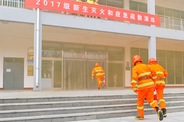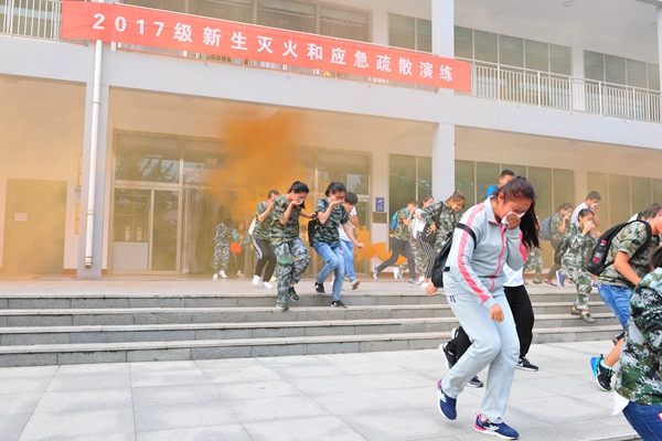 9月11日下午,为深入推进消防安全宣传教育“进军训”系列活动,保卫处联合潍坊市消防支队潍城大队、潍坊市雷霆应急救援中心举行了2017级新生灭火和应急疏散演练。副校长朱军出席活动。