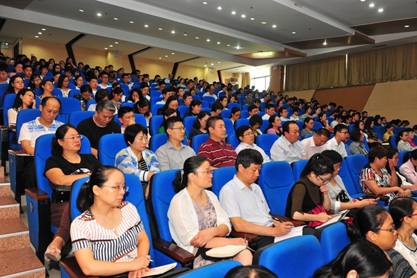 9月15日,学校在办公楼一楼报告厅召开国家自然科学(社科)基金申报工作会,校长管英俊出席会议并讲话,副校长刘军主持会议,各院(系)负责人及博士、副教授以上职称人员300余人参加了会议。